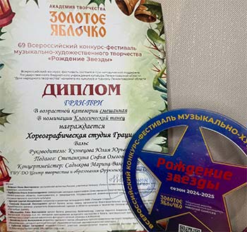 27.01.25 г. Поздравляем педагогов и воспитанниц хореографической студии «Грация» с победой в 69-ом Всероссийском конкурсе-фестивале музыкально-художественного творчества "Рождение Звезды" от Академии творчества "Золотое яблочко".