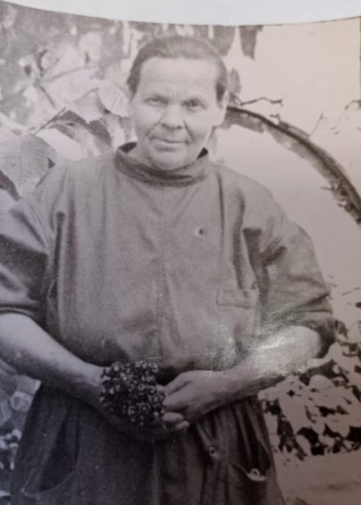 Когда началась война прабабушке было 12 лет. В 1942 году бабушку вместе с двоюродной сестрой Валентиной эвакуировали в Кировскую область. Мама и папа Головановы Александр Иванович и Наталья Михайловна остались в осажденном Ленинграде и умерли от голода в 1942 году , похоронены в братской могиле на Серафимовском кладбище.