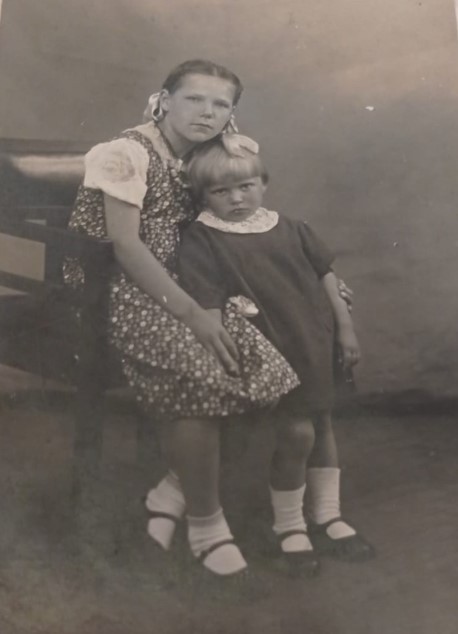 На фотографии 1941 год. Начало войны. Прабабушка вместе с двоюродной сестрой Валентиной.