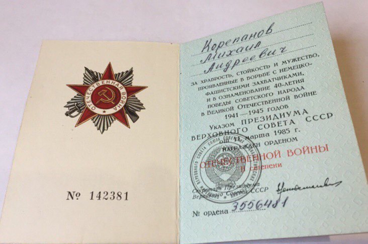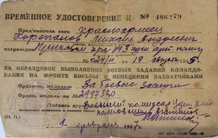 ![]() ![]() Другой прадедушка Насти - Корепанов Михаил Андреевич. Прошел всю войну, начиная с 1939, вернулся домой в 1946.